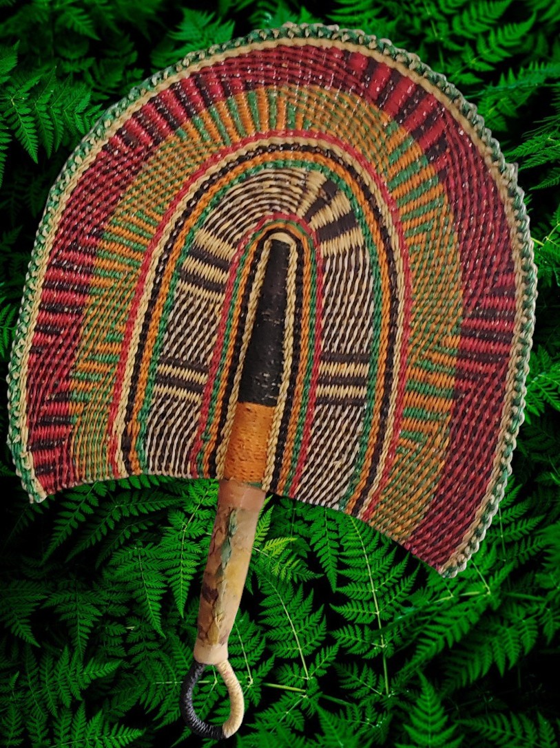 Eventail tressé GHANA  est un objet artisanal traditionnel originaire principalement des régions du Nord du Ghana, notamment chez les peuples Bolgatanga (ou Bolga), appartenant à l’ethnie Gurunsi.