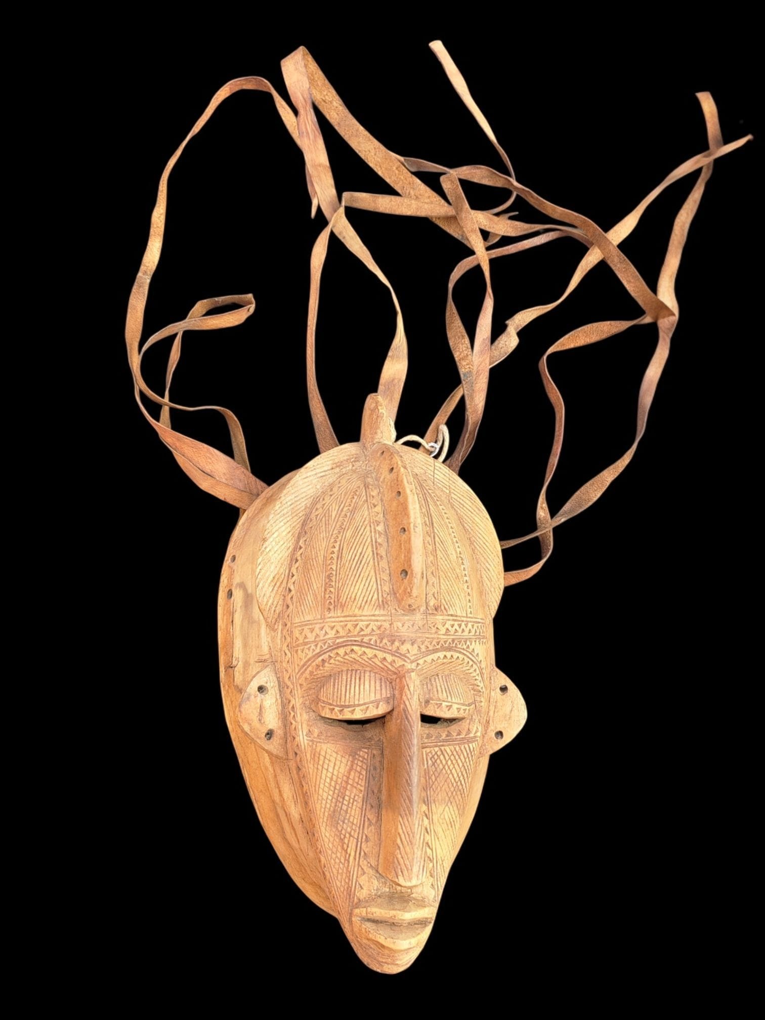 Ainsi, le masque présente une finition soignée qui reflète le respect accordé à l’objet rituel.