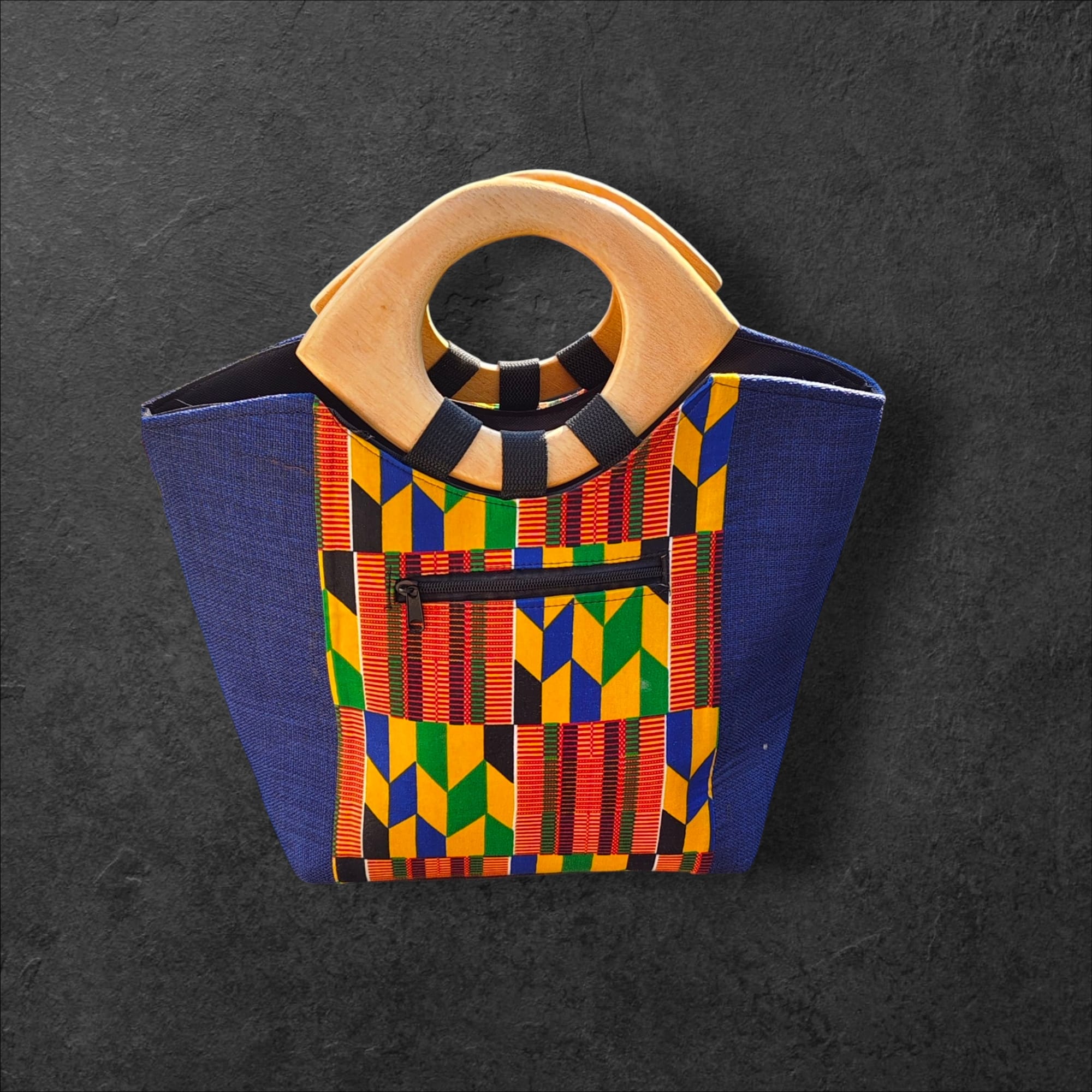 Le sac à main décor tissé Ashanti est une pièce artisanale inspirée du savoir-faire traditionnel du peuple Ashanti du Ghana, réputé pour son art du tissage et son sens raffiné des couleurs et des motifs symboliques.